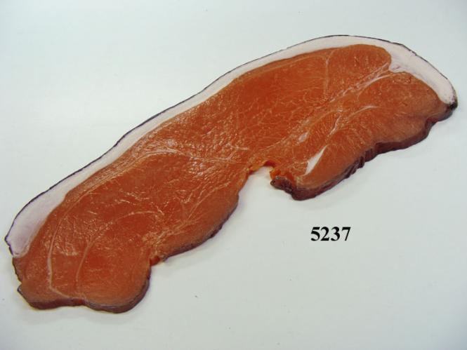 Originalgetreue Attrappe einer Schwarzwälder-Schinken-Scheibe.