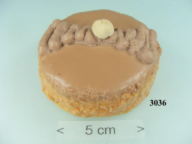 Wirklichkeitsgetreue Nachbildung eines Nougat-Nuss-Desserts.
