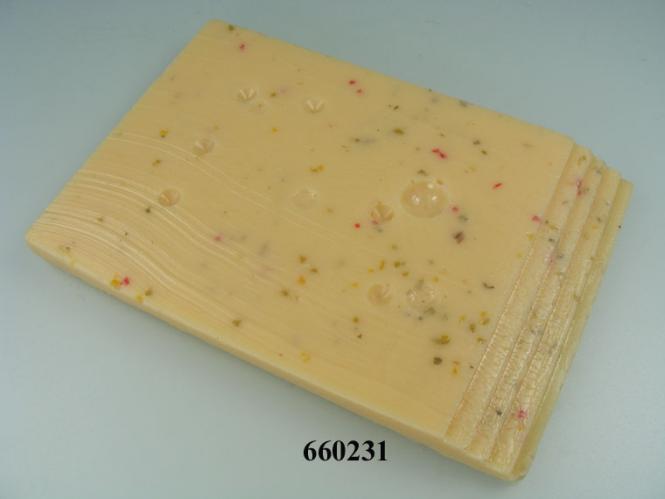 Originalgetreue Attrappe eines Käseblocks (5 Scheiben) italienische Kräuter.