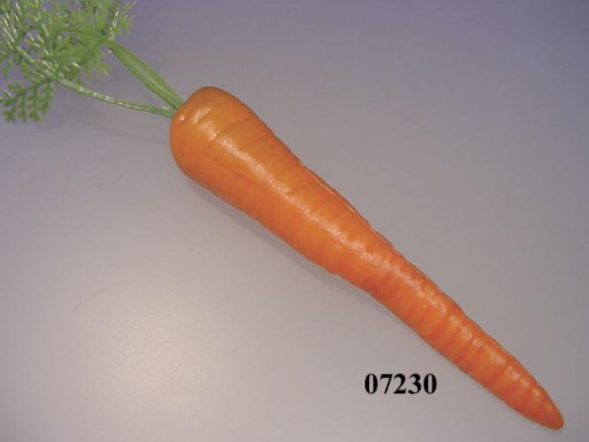 Originalgetreue Nachbildung einer Karotte mit Blättern.