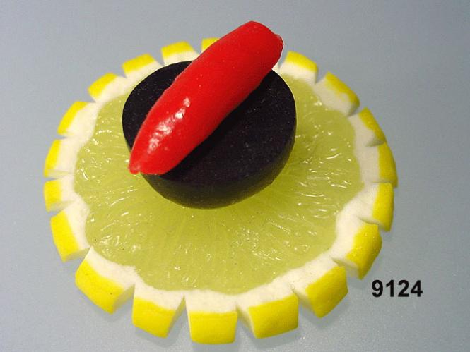 slice of lemon/black olive